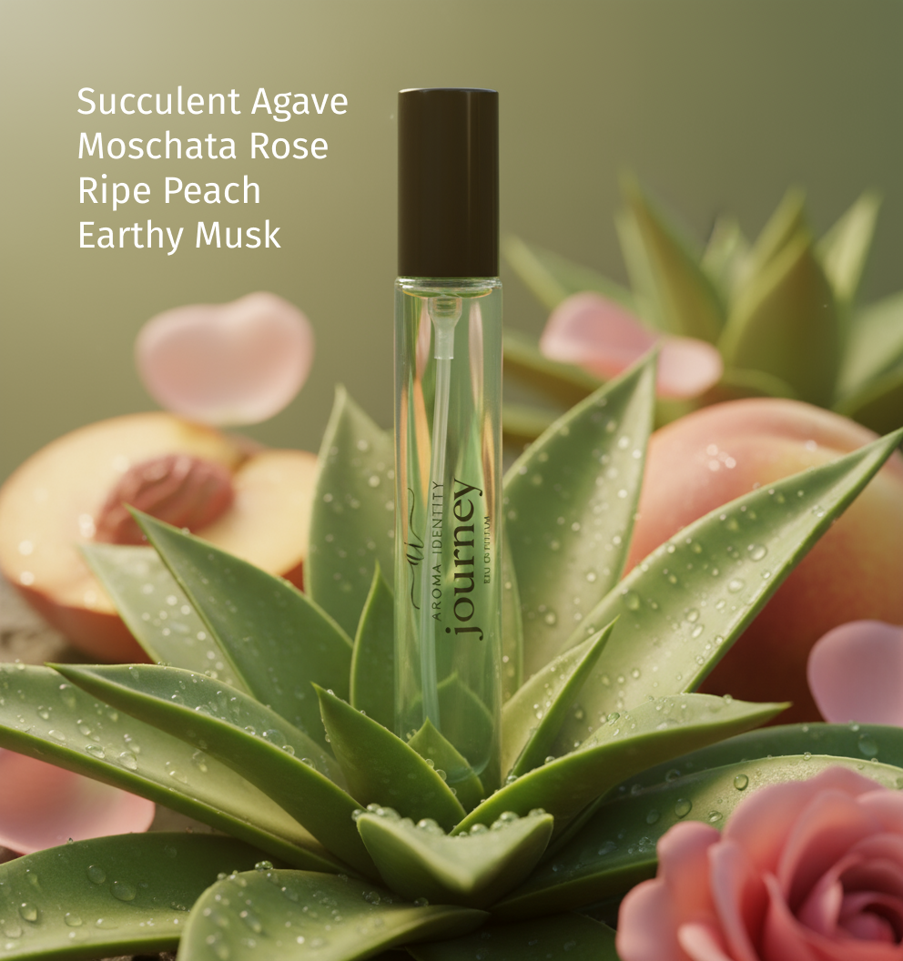 Adventurous you. Agave, Rose, Peach, and Musk join you on your path. Wherever you go, it's a Journey, enjoy the ride.